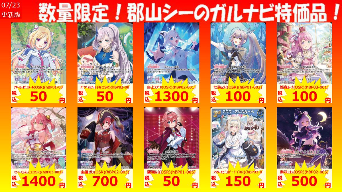 数量限定郡山シー限定ガルナビ特価品! 不知火フレア(RR)(hBP03-079) ¥100 戌神ころね(OSR)(hBP03-006) ¥550 アユンダ・リス(OSR)(hBP03-008) ¥150 #ホロカ #特価品 #シーガル郡山