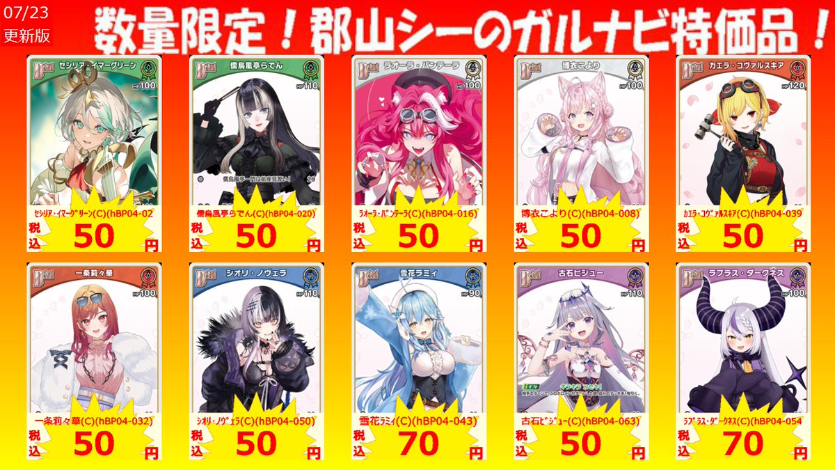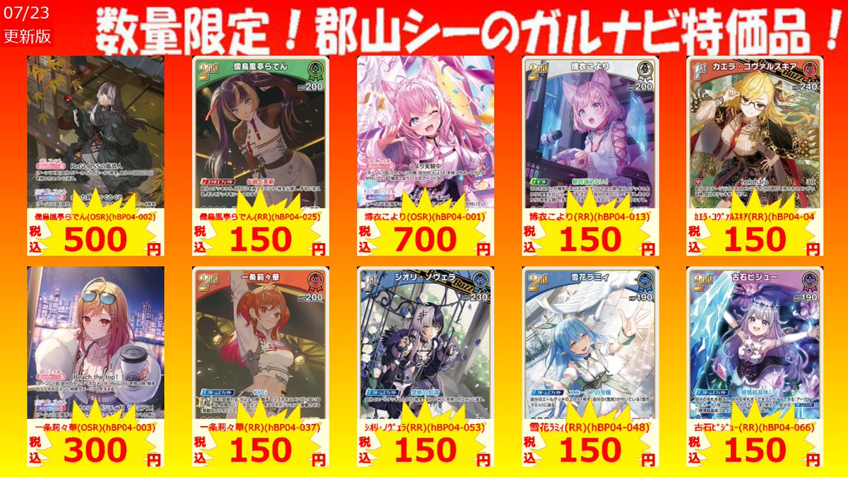 数量限定郡山シー限定ガルナビ特価品! 博衣こより(RR)(hBP04-013) ¥150 雪花ラミィ(RR)(hBP04-048) ¥150 ラプラス・ダークネス(RR)(hBP04-059) ¥150 #ホロカ #特価品 #シーガル郡山