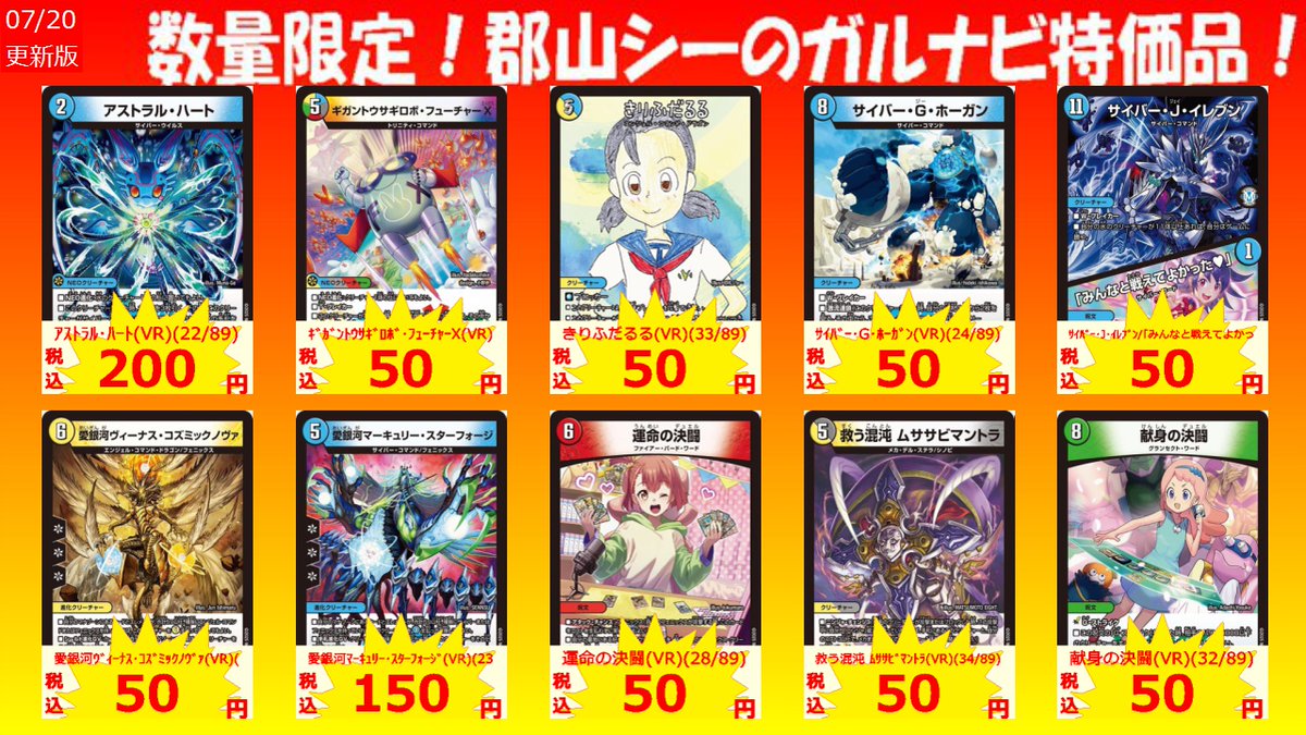数量限定!郡山シー限定ガルナビ特価品 超神星ライラ・ボルストーム(SR)(9/89) ¥70 ジーク・ナハトファルター(SR)(13/89) ¥70 閃光龍覇 デコローズ(SR)(2/89) ¥100 #デュエマ #シーガル郡山 #アツアツ特価