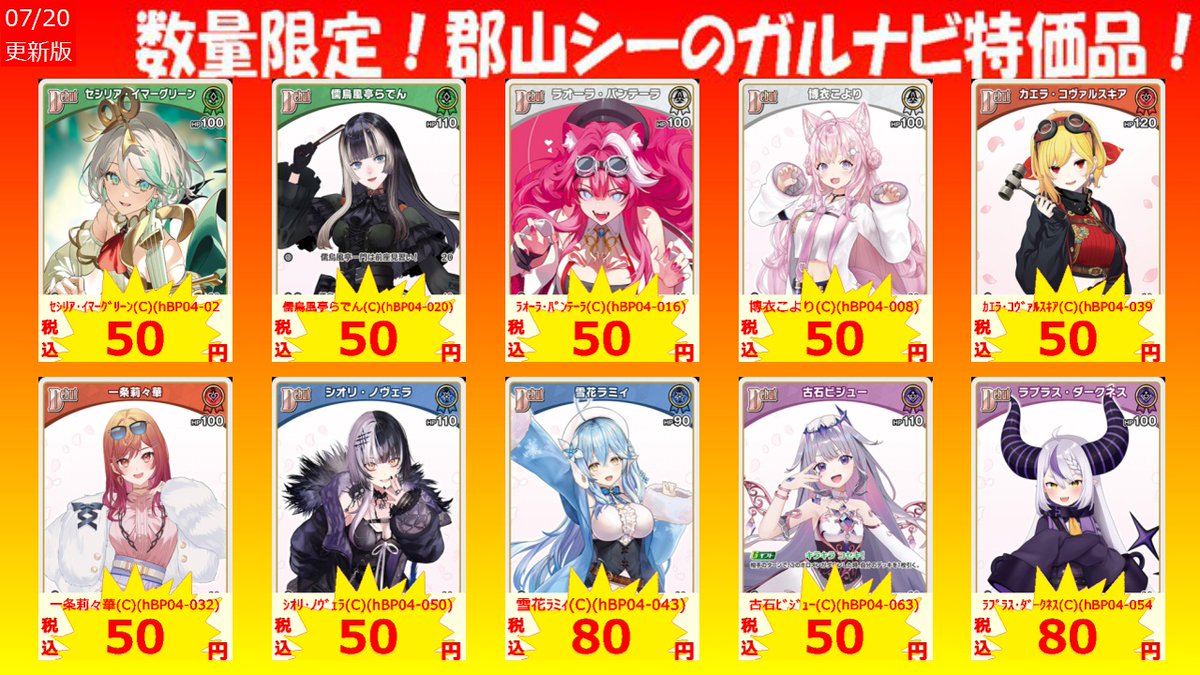 数量限定郡山シー限定ガルナビ特価品! ラオーラ・パンテーラ(C)(hBP04-016) ¥50 赤井はあと(C)(hBP03-031) ¥80 アユンダ・リス(C)(hBP03-073) ¥80 #ホロカ #特価品 #シーガル郡山