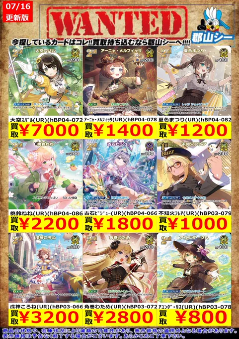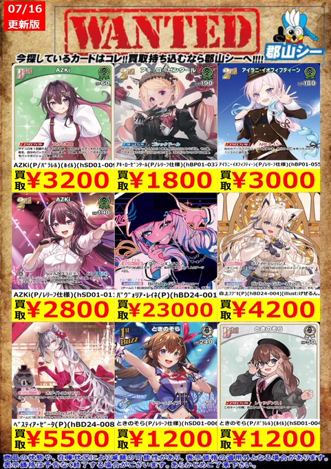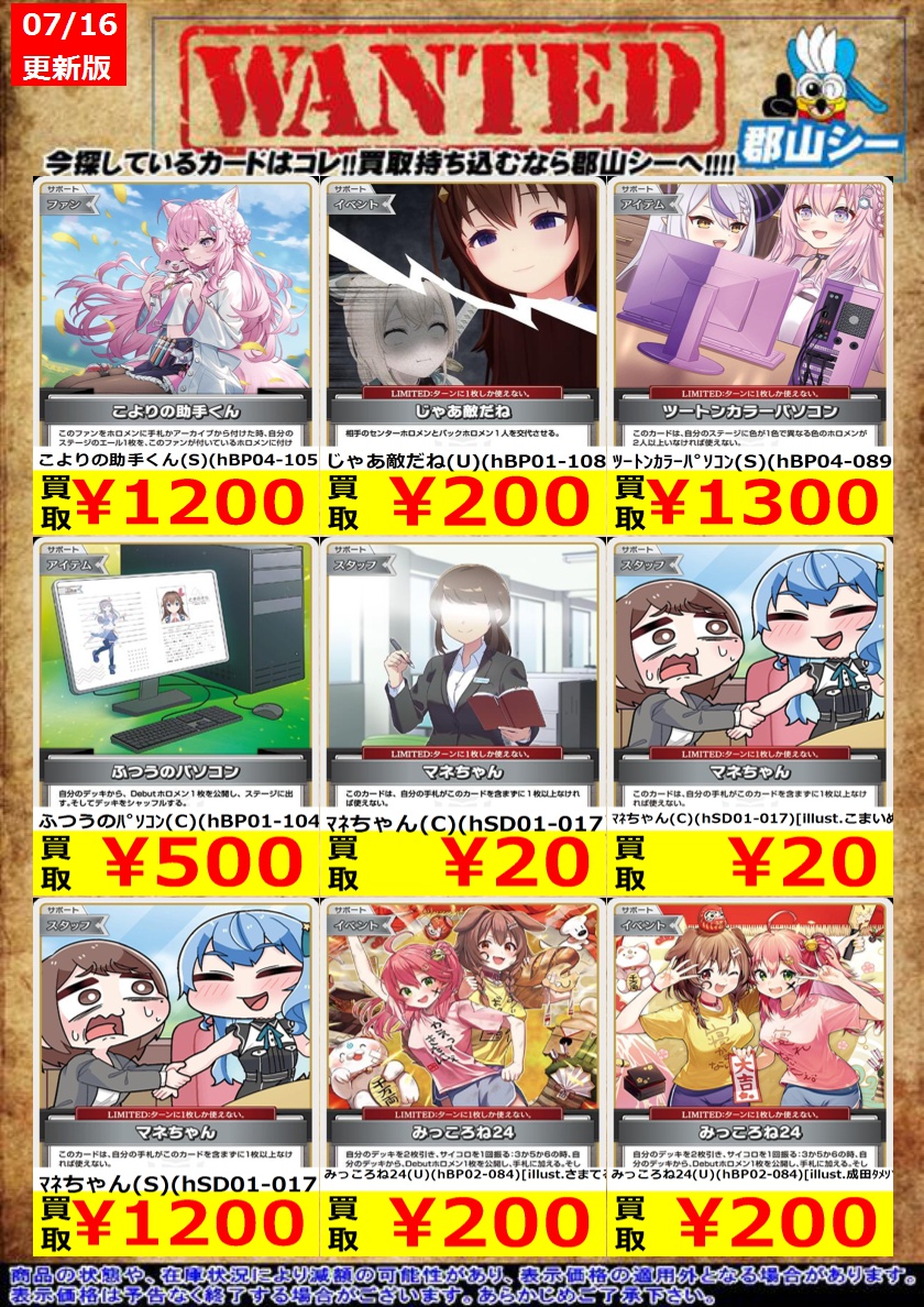 シーガル郡山店ホロライブOCGお買取り情報!! ※商品の状態や在庫状況により減額の可能性があり、表示価格の適用外となる場合がございます。 #ホロライブOCG #ホロカ #シーガル郡山