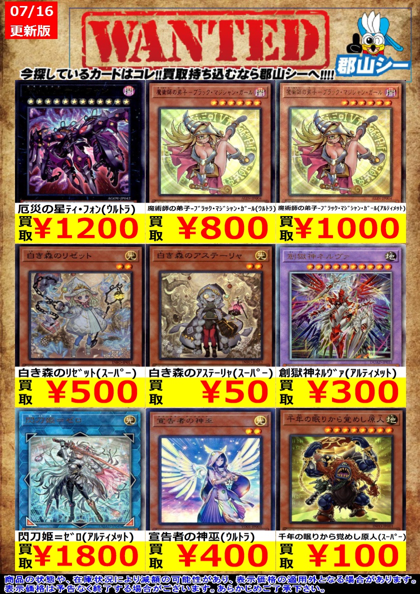 シーガル郡山店遊戯王お買取り情報 ※商品の状態や在庫状況により減額の可能性があり、表示価格の適用外となる場合がございます。 #遊戯王 #シーガル #郡山店