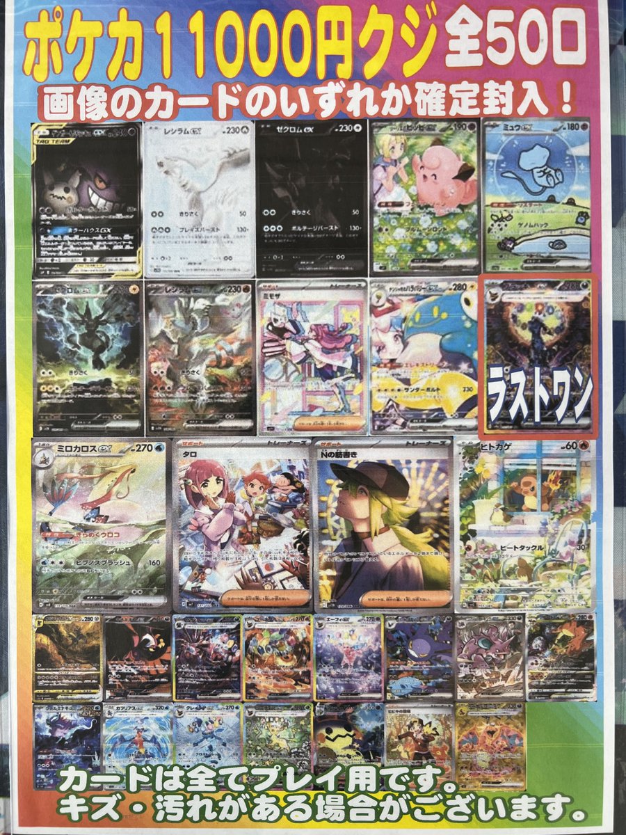 🌈ポケカ11,000円くじ🌈 新しくお出ししました‼️ ゲンミミSAやレシゼクBWR等が当たります🎯 是非ぜひお試しください(*´ω`*)