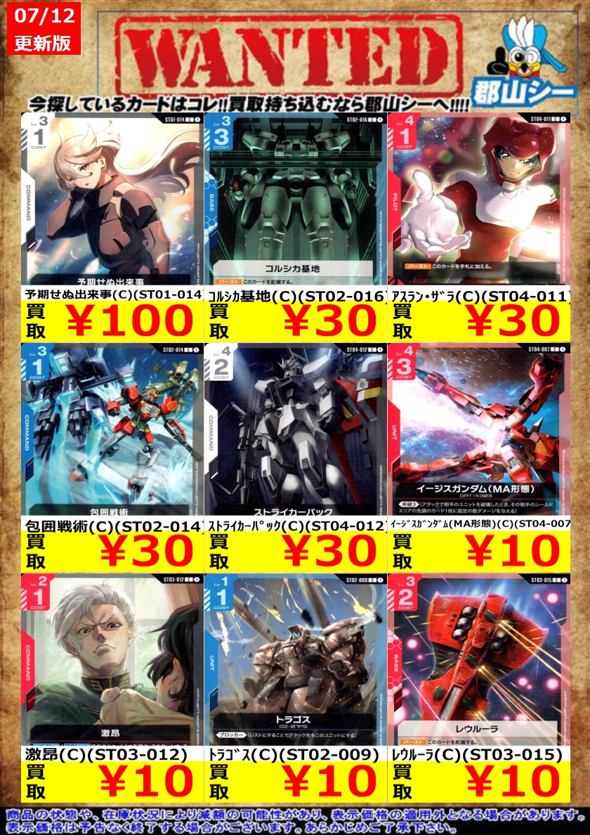 シーガル郡山店ガンダムCGお買取情報!! トラゴス(C)(ST02-009) ¥10 激昂(C)(ST03-012) ¥10 格闘戦(C)(ST03-013) ¥10
