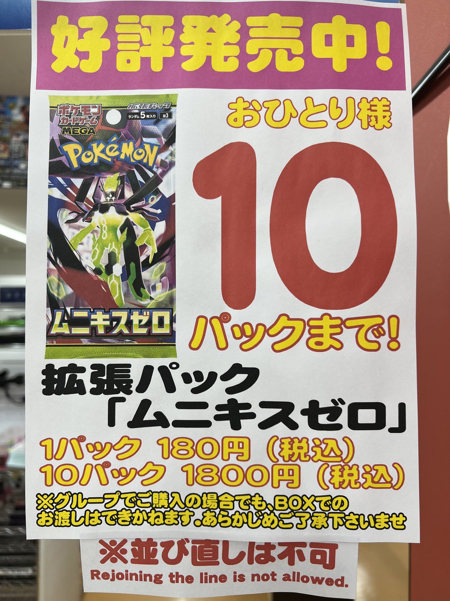 ポケカ「ムニキスゼロ」 おひとり様10パック限定で販売中です‼️ ご来店お待ちしております!