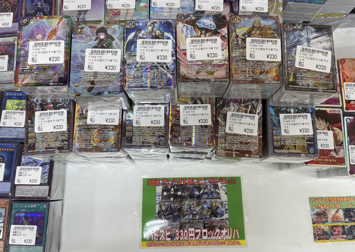 こんにちは(」・ω・) シーガル郡山店のたなっかです。 バトスピ330円ブロックを作成致しました。 あたりも大変豪華な仕様となっております。 ご来店お待ちしております(*^^*)