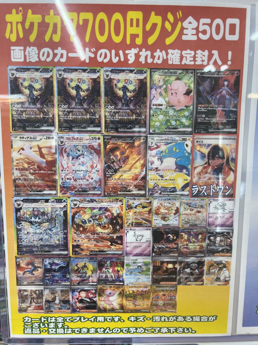 こちらのオリパくじ、残り口数僅かとなっております‼️ 《ポケカ》 7,700円くじ 残り16口 3,500円くじ 残り12口 《デュエマ》 5,500円くじ 残り26口 華くじ(¥2,500) 残り35口 それぞれラストワン付き✨️ 当たりもワンチャン残っているかも⁉️ 是非ぜひお試しください(*´ω`*)