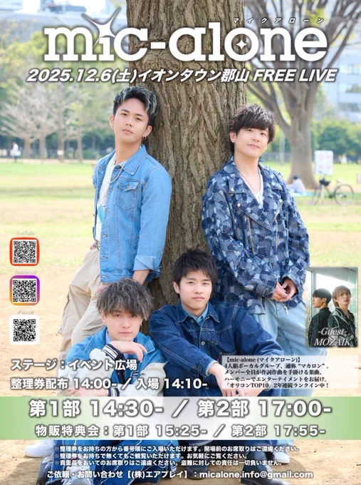 \✨本日開催✨/ 本日12/7(日)16:30〜 けんしん郡山文化センター中ホールにて 「mic-alone Concert 2025 この世界の片隅で」が開催されます‼️ 現地チケットと配信チケットがあるそうです。 集大成となるライブは要チェックです🌟
