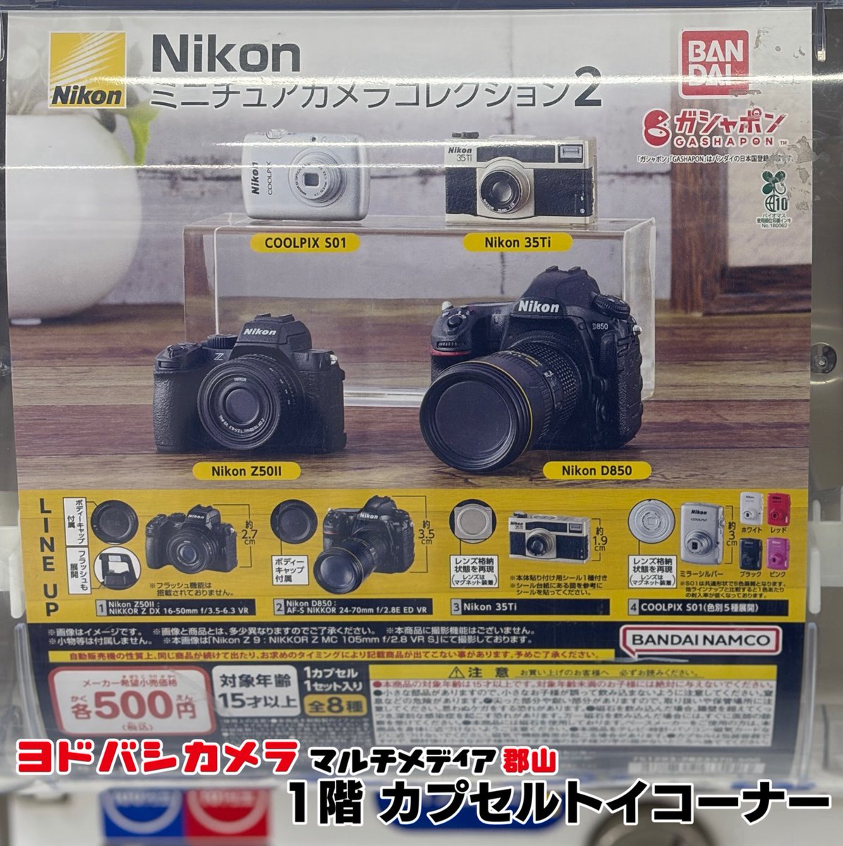 ヨドバシ郡山1階カプセルトイ販売情報‼️ ✅Nikon ミニチュアカメラコレクション2 ✅パンダコパンダ 前髪クリップ2 ✅魔法少女まどか☆マギカ カプセルラバーキーホルダーArt ✅豆ガシャ本 GUNDAM WEPONS+SDガンダム