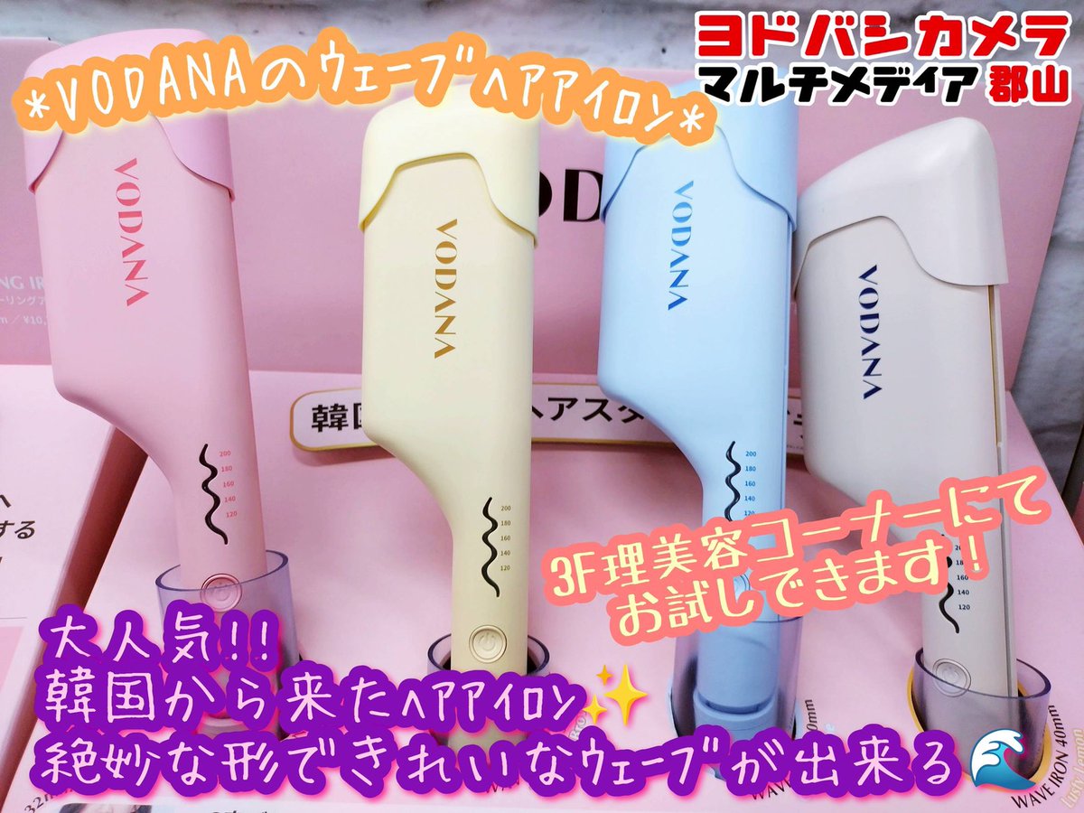 【販売員おすすめ商品】 韓国から来た大人気 VODANAの 「トリプルフローウェーブアイロン」 このヘアアイロンはなんと 挟むだけでかんたんに きれいなウェーブができちゃいます❤ ぜひGETしてください🎵 お試しは3階理美容コーナーへ💁 ➡