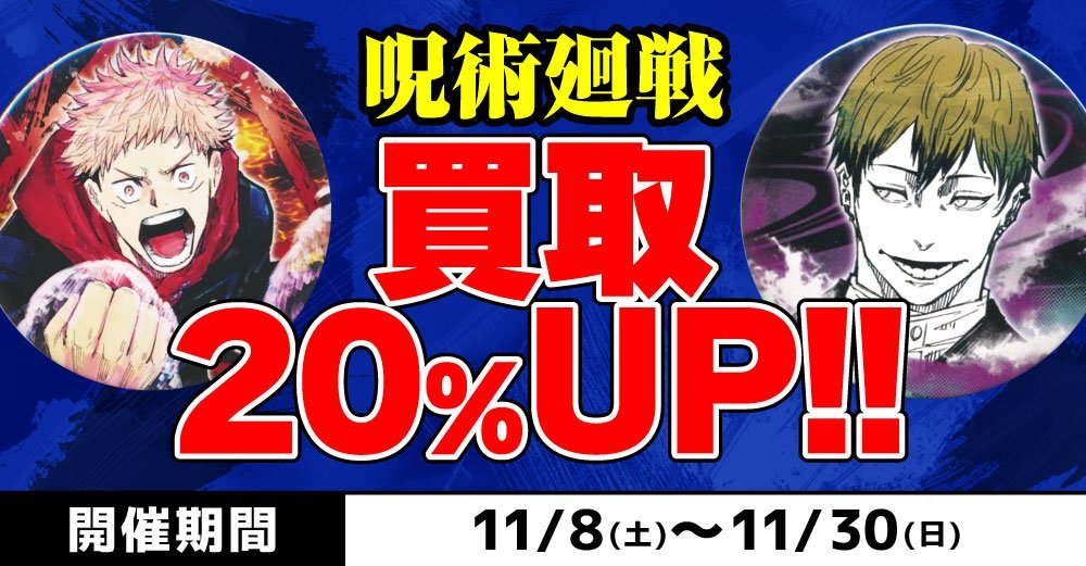 おはようございます らしんばん郡山店、本日も営業開始📢 販売は夜20時、買取は12時~18時です‼️ #呪術廻戦 買取強化UPキャンペーン開催中 査定金額1⃣0⃣0⃣円以上のキャラクターグッズの金額が2⃣0⃣%UP‼️ お持ち込みお待ちしております🙌 👇詳細はこちらからご確認ください