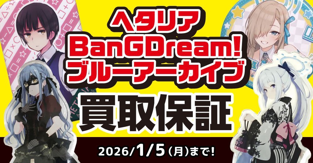 おはようございます‼️ らしんばん郡山店、本日も営業開始しました✨ 2件の買取キャンペーンは本日まで📢 お見逃しなく‼️ 👇ヘタリア・BanGDream!・ブルーアーカイブ買取保証 👇アクリルグッズ買取UPキャンペーン