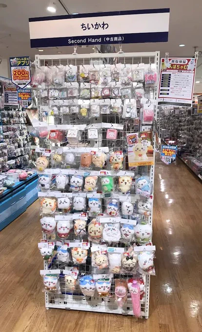 【らしんばん郡山店/コーナー情報】 ちいかわコーナーはお店に入ってすぐ‼️ 大きいぬいぐるみは入ってすぐ、右側のラックにどどーんっと展開中✨ らしんばん郡山店へ、ぜひご来店ください🙌