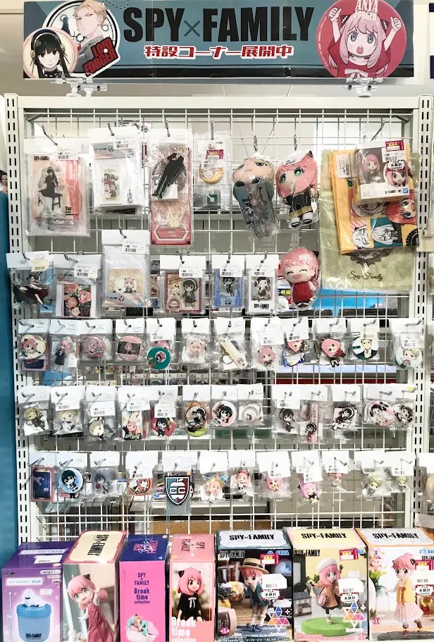 【らしんばん郡山店/コーナー情報】 SPY×FAMILY特設コーナー展開中‼️✨ 缶バッジやアクリルグッズ、フィギュアなどを一箇所にまとめましたよ~🙌 らしんばん郡山店へ、ぜひご来店ください~📢