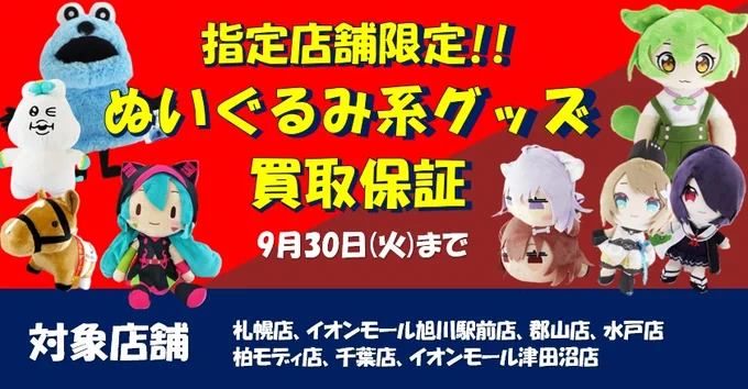 【らしんばん郡山店/キャンペーン情報】 9月30日までの期間中、 人気のキャラクターグッズのぬいぐるみ買取保証キャンペーンを実施!🔥 パペットスンスンなど強化価格でお買取りいたします!🙌 お持ち込みお待ちしております🙇 👇対象作品はこちら lashinbang.com/news/9854/
