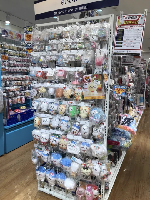 【らしんばん郡山店/コーナー情報】 ちいかわコーナーのご紹介 入口すぐにマスコットや小物グッズコーナーをその横の列には、ぬいぐるみをどどーんっと展開中😀 9/5からは、店舗隣のスペースにてちいかわPOPUPSTOREも開催されちゃいます。 是非この機会にお越しくださいませ。