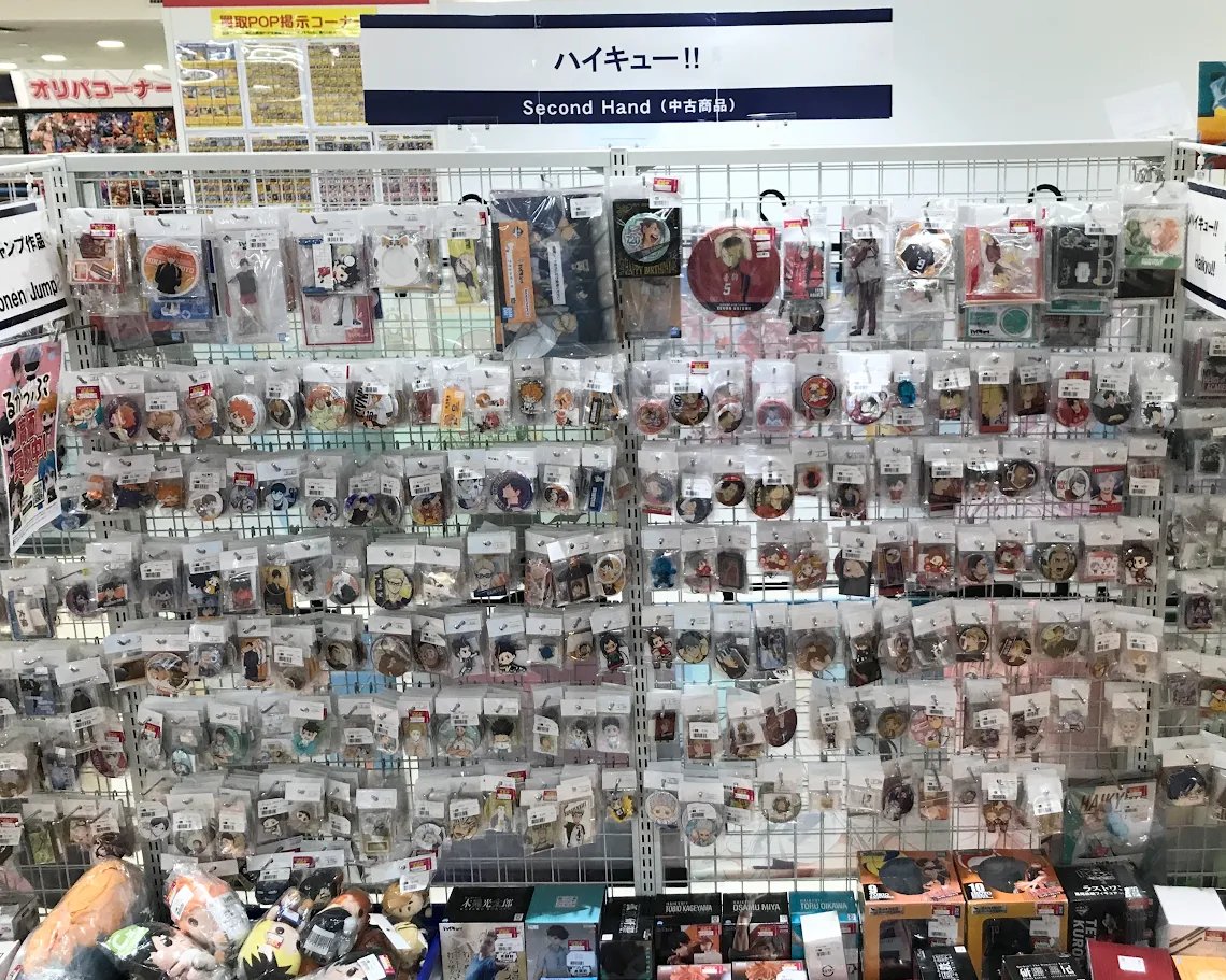 【らしんばん郡山店/コーナー情報】 \\ハイキュー!!コーナーが広くなりました‼️‼️// 缶バッジやアクリルグッズ、マスコットやフィギュアも取り扱っております🏐 学校ごとに展開中ですよ👀 お探しの商品がありましたら、スタッフにお声がけください🙌