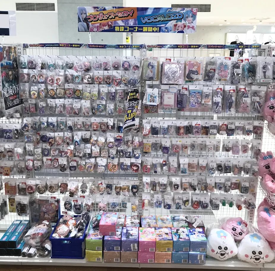 【らしんばん郡山店/コーナー情報】 プロセカ特設コーナー展開中🎤 缶バッジやアクスタ、マスコットや色紙も取り扱っております☺️ プロセカキャラのフィギュアはコーナー下の平台に😳 初音ミクのフィギュアは フィギュアコーナーにドドーンと品出し中‼️😍 らしんばん郡山店でお待ちしております😉