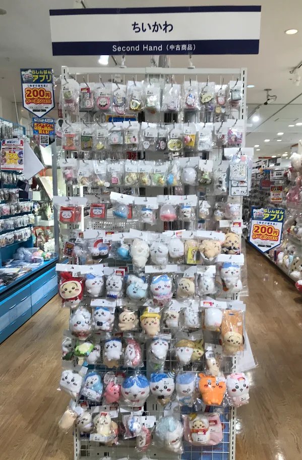 【らしんばん郡山店/コーナー情報】 ちいかわコーナーはお店に入ってすぐ‼️ 大きいぬいぐるみは 右側のラックにどどーんっと展開中✨ らしんばん郡山店へ、ぜひご来店ください🙌
