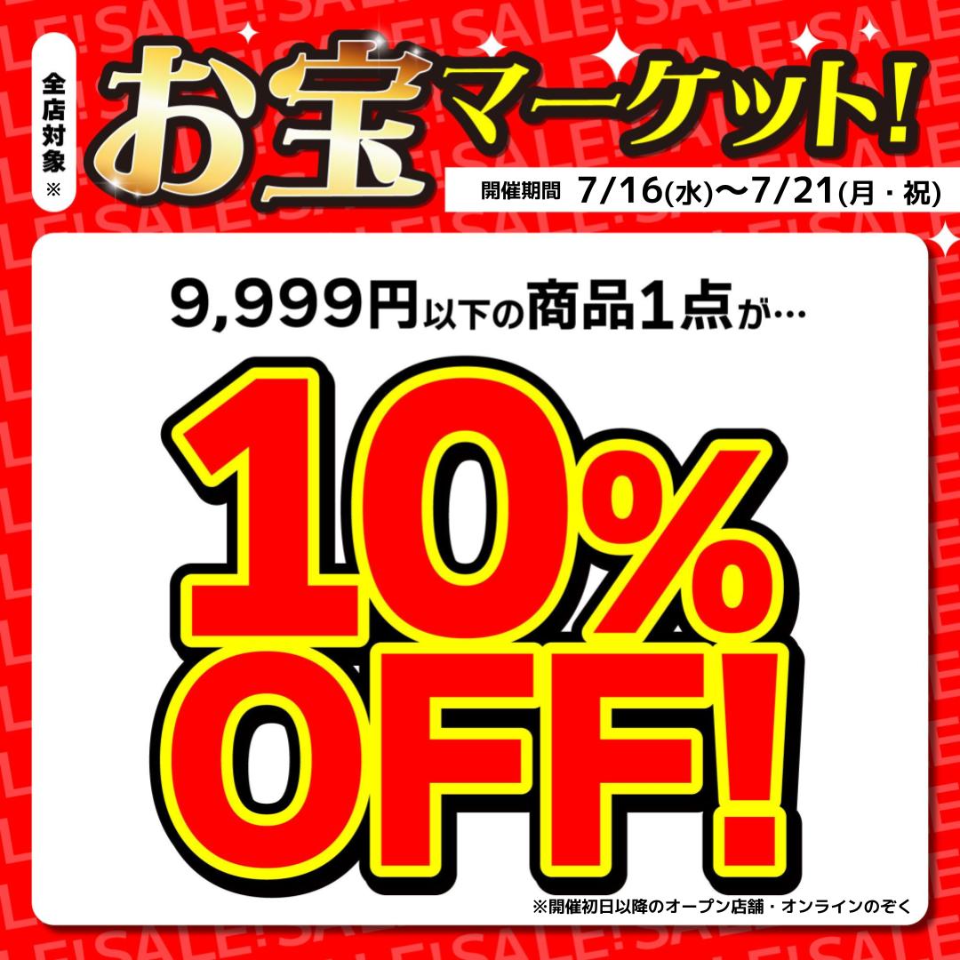 【らしんばん郡山店/セール情報】 \らしんばんお宝マーケット開催決定‼️/ 期間:7/16(水)~07/21(月・祝) 対象値札の商品ご購入した際 10,000円未満の商品1点1⃣0⃣%OFF🔥 #らしんばん #Ati郡山 #郡山 #セール