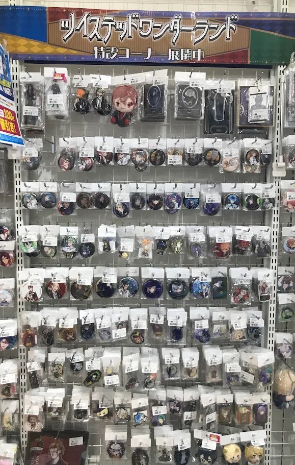 【らしんばん郡山店/コーナー情報】 ツイステッドワンダーランド 特設コーナー展開中✨ 缶バッジやアクリルグッズ、ミニフィギュアや小さいマスコットなども取り扱っております‼️ コーナーは店内入って左側にございます📢 お探しのものがございましたら、スタッフにお声がけください🙌