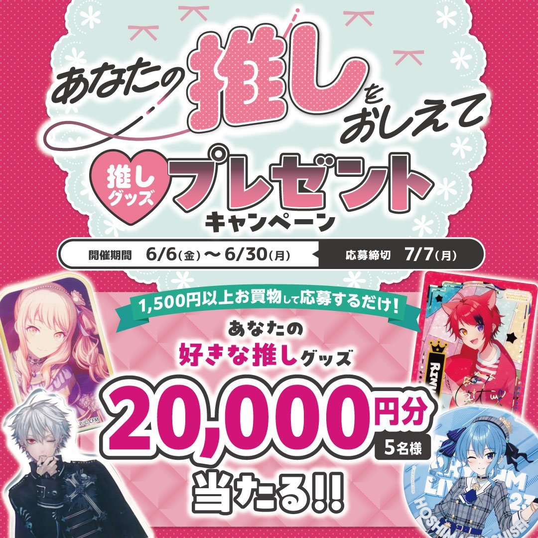 【キャンペーン情報】 推しグッズプレゼントキャンペーン 6/6~6/30まで開催✨ 1,500円以上お買い上げ&あなたの推し💞を回答すると、推しのグッズ合計2⃣万円相当が抽選で5⃣名様に当たる🎊 さらに!はずれても3⃣0⃣名様に #Amazonギフトカード が当たる! 詳細はコチラ👇 lashinbang.com/news/9658/