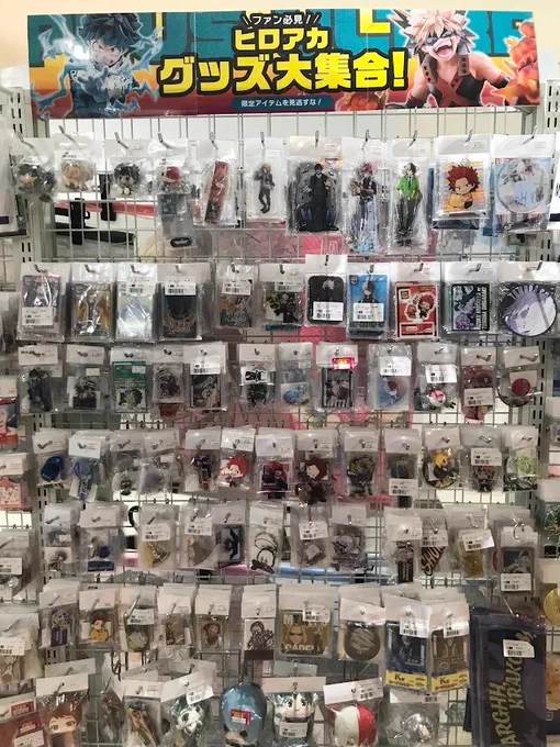 【らしんばん郡山店/コーナー情報】 #僕のヒーローアカデミア コーナー展開中✨ 缶バッジやアクリルグッズ、一番くじ景品も取り扱っております🙌 フィギュアはメタルラックにございます‼️ お探しの商品がありましたら、スタッフにお声がけください📢