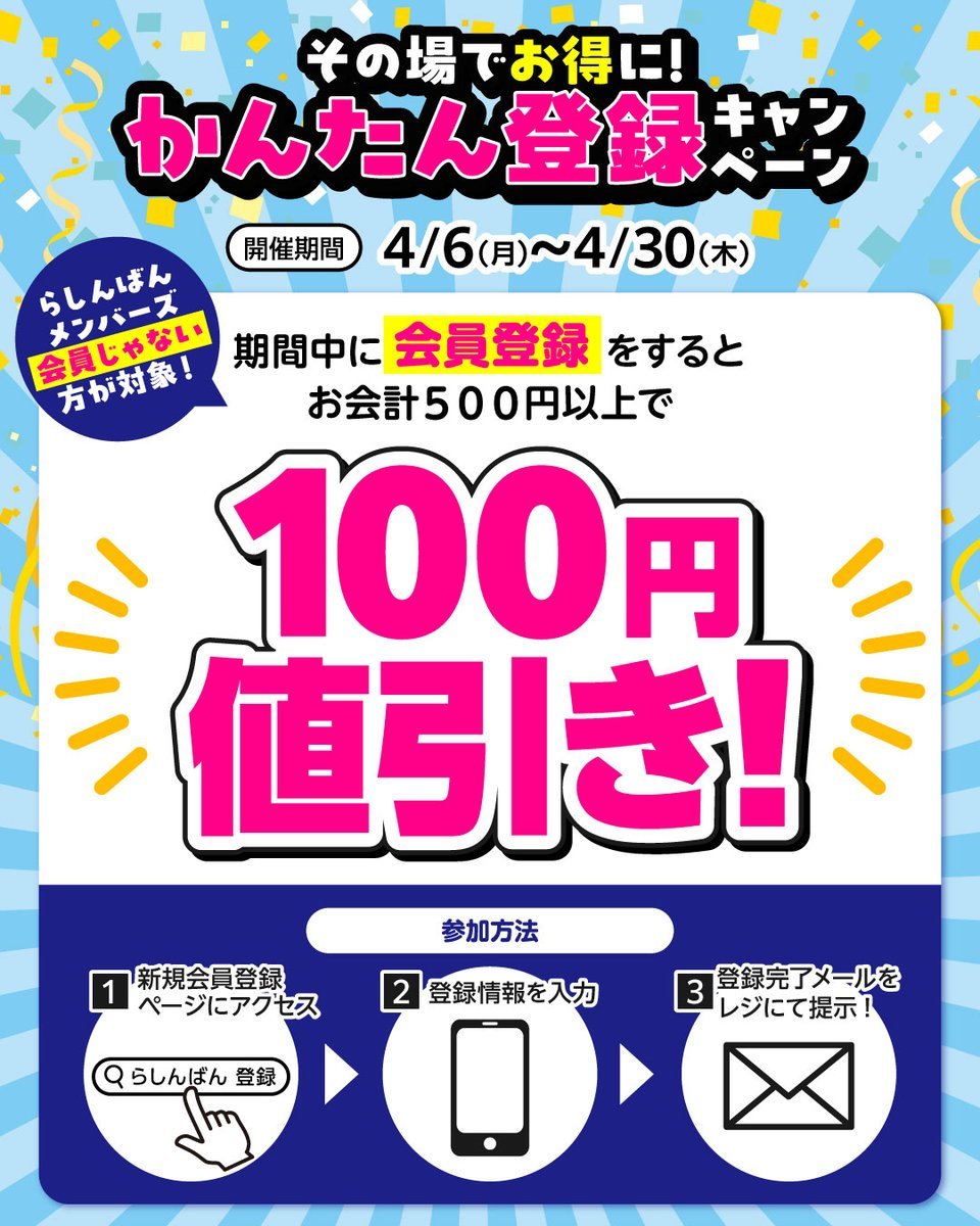 おはようございます‼️ らしんばん郡山店、本日も営業開始しました🌟 販売は夜20時まで、買取は12時~18時までです📢 \\らしんばんメンバーズ会員じゃない方が対象‼️// 🌟かんたん登録キャンペーン🌟 期間中に会員登録をすると お会計5⃣0⃣0⃣円以上で1⃣0⃣0⃣円値引き😍