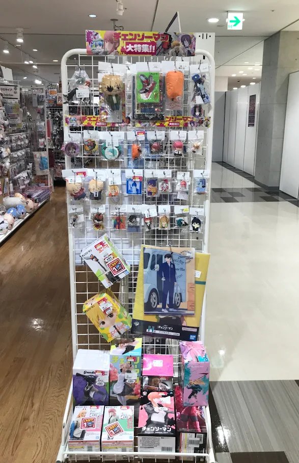 【らしんばん郡山店/コーナー情報】 #チェンソーマン コーナー爆誕💥💥 小物グッズは店頭に展開しております✨ フィギュアはメタルラックにございます‼️ お探しの物がある方はスタッフにお声がけください📢 チェンソー様最高‼️チェンソー様最高‼️チェンソー様最高‼️