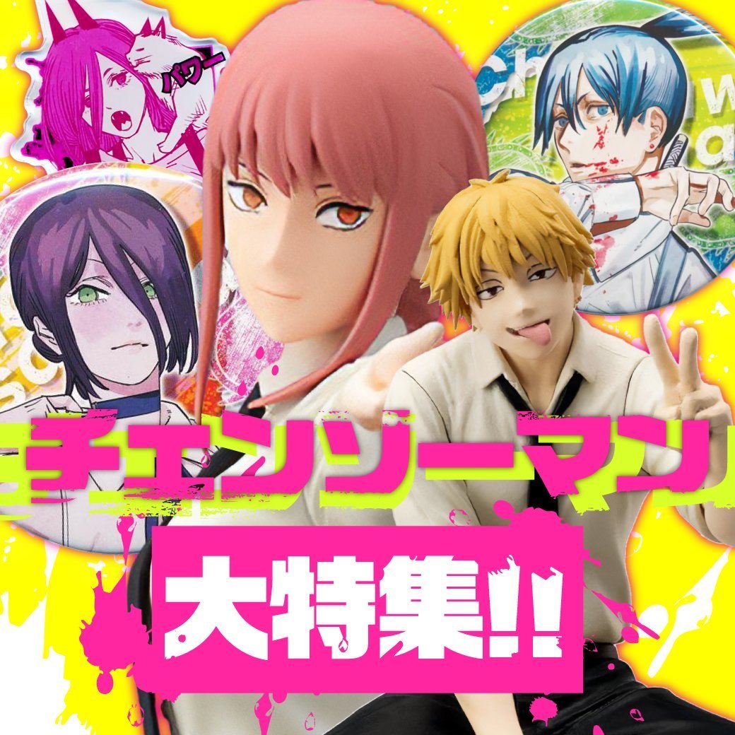 【らしんばん郡山店/コーナー情報】 #チェンソーマン コーナー爆誕💥💥 小物グッズは店頭に展開しております✨ フィギュアはメタルラックにございます‼️ お探しの物がある方はスタッフにお声がけください📢