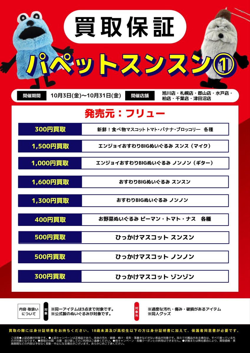 【らしんばん郡山店/キャンペーン情報】 \\\指定店舗限定/// 10/3~10/31の期間中、 パペットスンスンの買取保証を開催中~📢 詳細は下の画像をご確認ください🙇 お持ち込みお待ちしております✨ #パペットスンスン