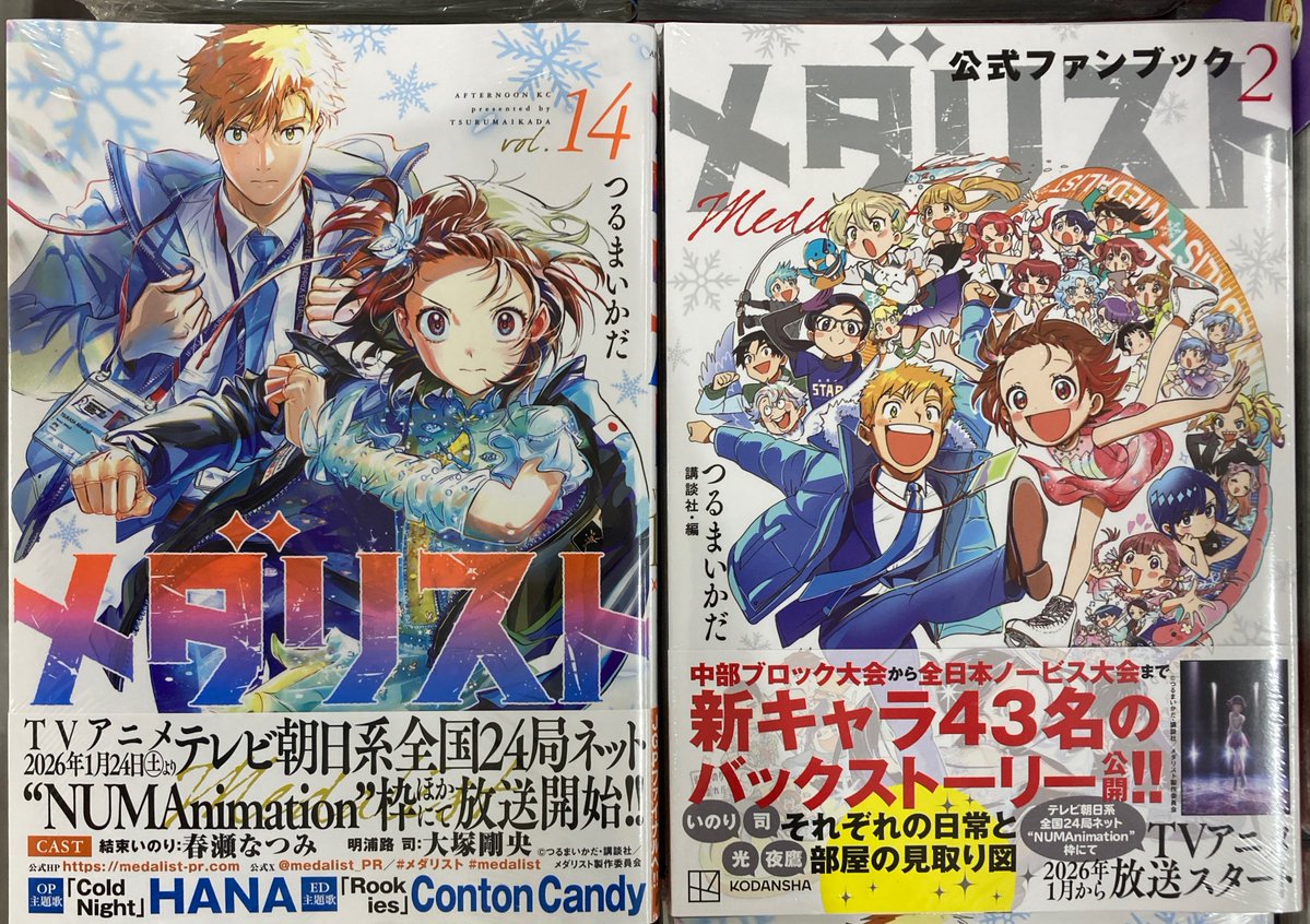 【書籍新刊情報】 「メダリスト 14」 「メダリスト公式ファンブック 2」 が入荷しましたコォ⛸️ #メダリスト #つるまいかだ 先生 新刊コーナーにて発売中‼️