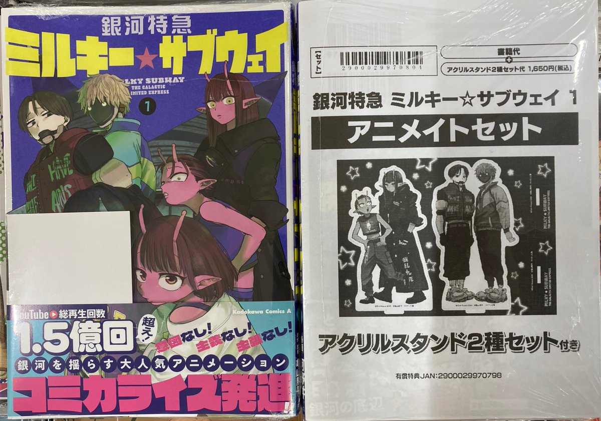 【書籍新刊情報】 「銀河特急 ミルキー☆サブウェイ 1」が入荷しましたコォ✨ アニメイトセットがございます 購入特典【ブロマイド・クリアファイル】がございます #ミルキーサブウェイ #河野丼 先生 #亀山陽平 先生 新刊コーナーにて発売中‼️