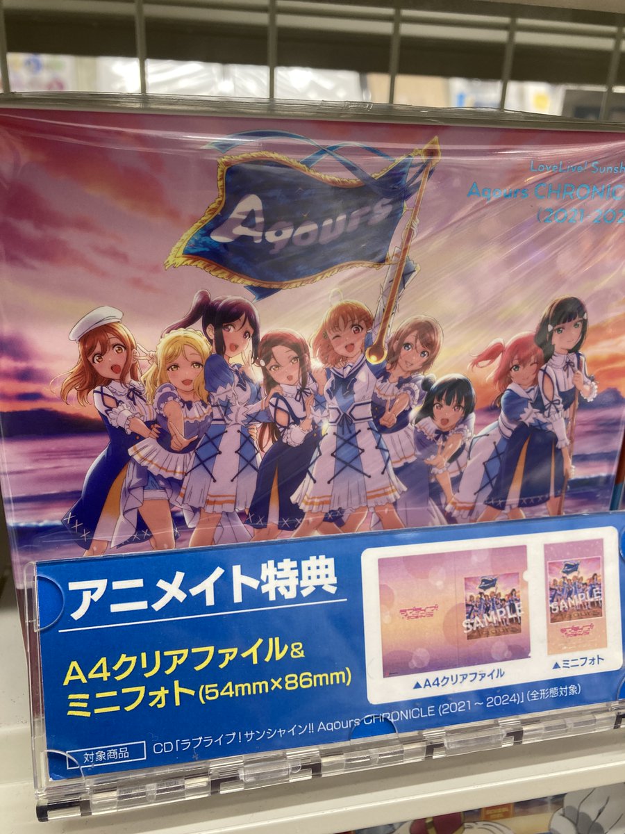 【CD入荷情報】 ラブライブ!サンシャイン!! Aqours CHRONICLE (2021~2024) 入荷しましたコォ🎵🎵 🎁アニメイト特典:A4クリアファイル&ミニフォト(54mm×86mm) #Aqours #lovelive