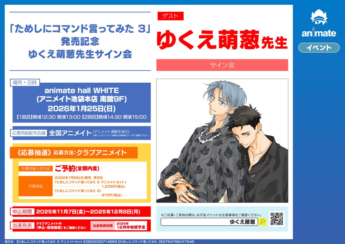 【CD予約情報】 ドラマCD #この手を離さないで 3 予約受付中コォ✨✨ ドラマCD発売記念 原作:#咲本﨑 先生 サイン会 応募シリアル配布は11/9まで‼️‼️ ※全額内金でご予約いただいた方にお渡しとなります。 🔽バーコード提示で簡単予約