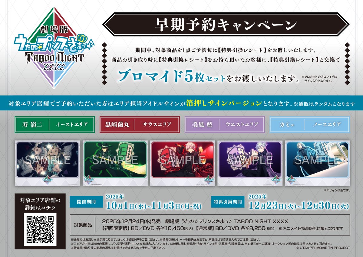 【フェア情報】 📢11/3まで‼️ 劇場版 うたの☆プリンスさまっ♪ TABOO NIGHT XXXX早期予約キャンペーン 開催中コォ‼️ 期間中、対象商品をご予約でお引き取り時【ブロマイド5枚セット】をお渡し✨ 郡山店はカミュさんが箔押しサインバージョンとなりますコォ✨✨ #うたプリTN 詳細は🔽POPをチェック