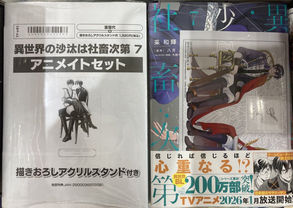 【書籍新刊情報】 「異世界の沙汰は社畜次第」7巻が入荷しましたコォ🌟 アニメイトセット【描きおろしアクリルスタンド付き】がございますコォ❗️ 新刊コーナーにて発売中ですコォ🎶