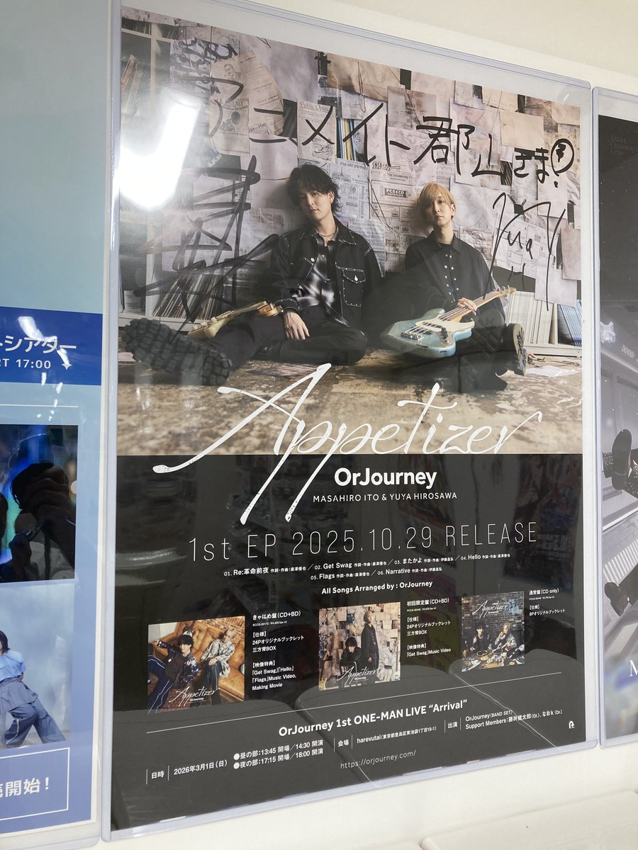 【展示情報】 現在店頭にて、OrJourneyさんのサイン入りポスターを掲示中ですコォ‼️‼️ ご来店された際には是非ご覧ください。 #OrJourney