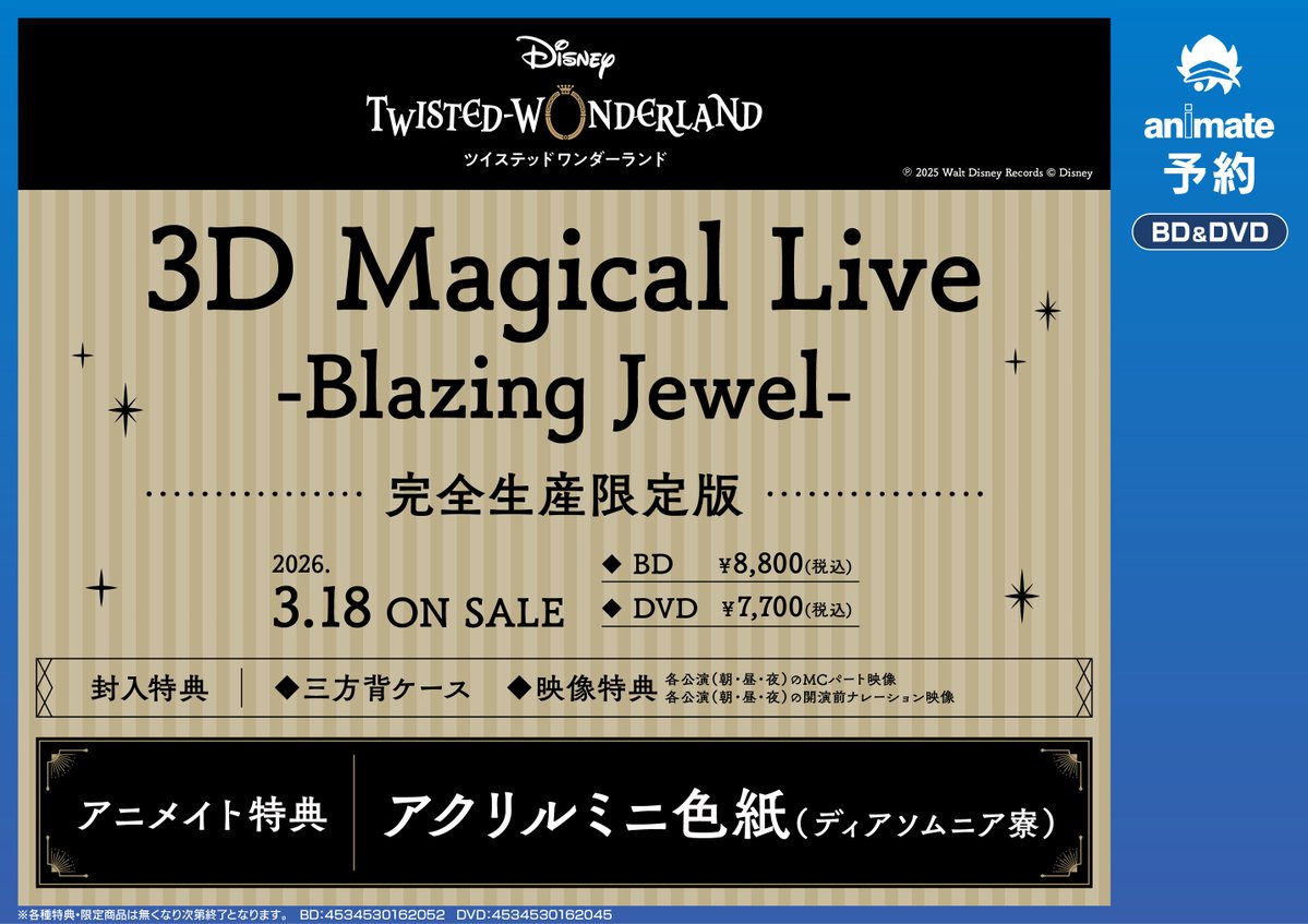 【BD/DVD予約情報】 Disney Twisted-Wonderland 3D Magical Live -Blazing Jewel- Blu-ray【完全生産限定版】 予約受付中コォ✨✨ 🎁アニメイト特典:アクリルミニ色紙(ディアソムニア寮) #ツイステ #BlazingJewel 🔽バーコード提示で簡単予約