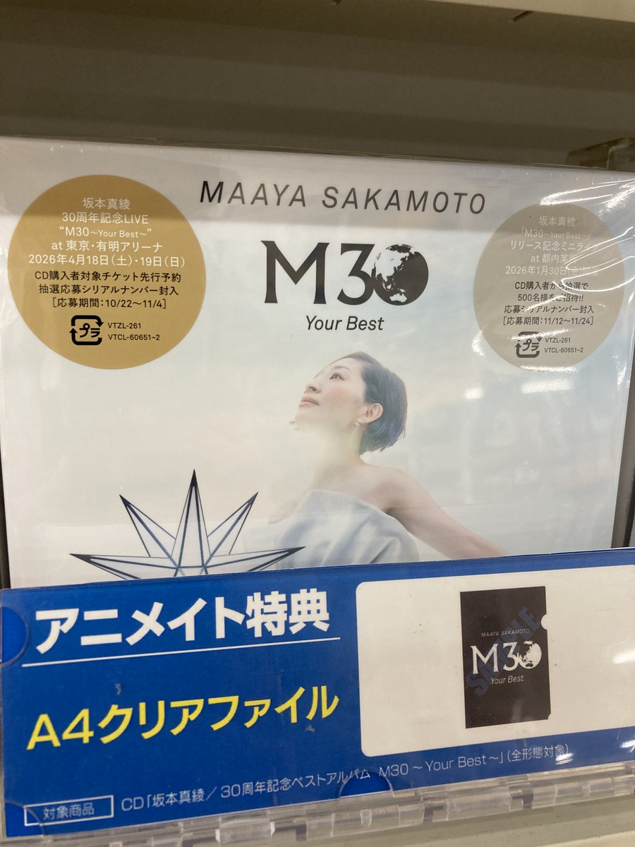 【CD入荷情報】 #坂本真綾 さん 30周年記念ベストアルバム M30~Your Best~ 入荷しましたコォ🎵🎵 🎁アニメイト特典:A4クリアファイル 本日より発売記念プレゼントキャンペーン、発売記念オリジナルレシート発行開催コォ‼️‼️