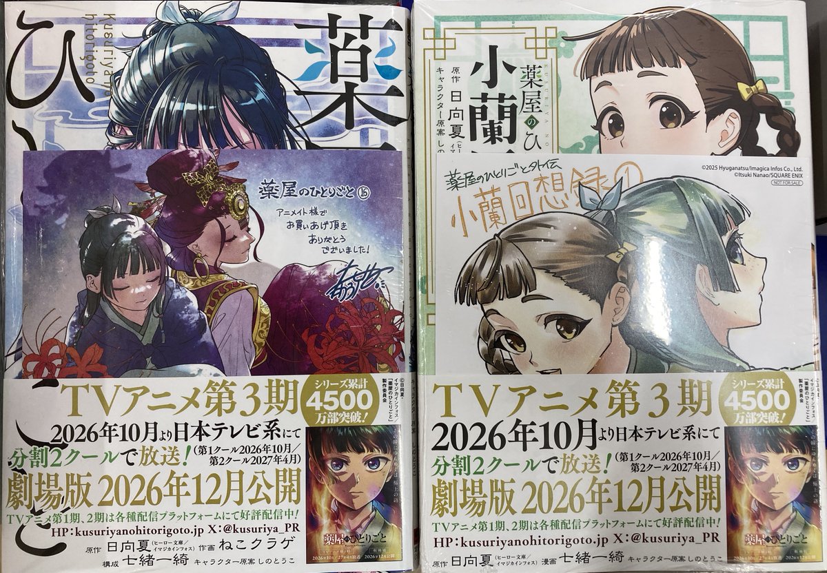 【書籍新刊情報】 「薬屋のひとりごと」16巻 「薬屋のひとりごと外伝 小蘭回想録」1巻 が入荷しましたコォ💕 新刊コーナーにて発売中ですコォ❗️