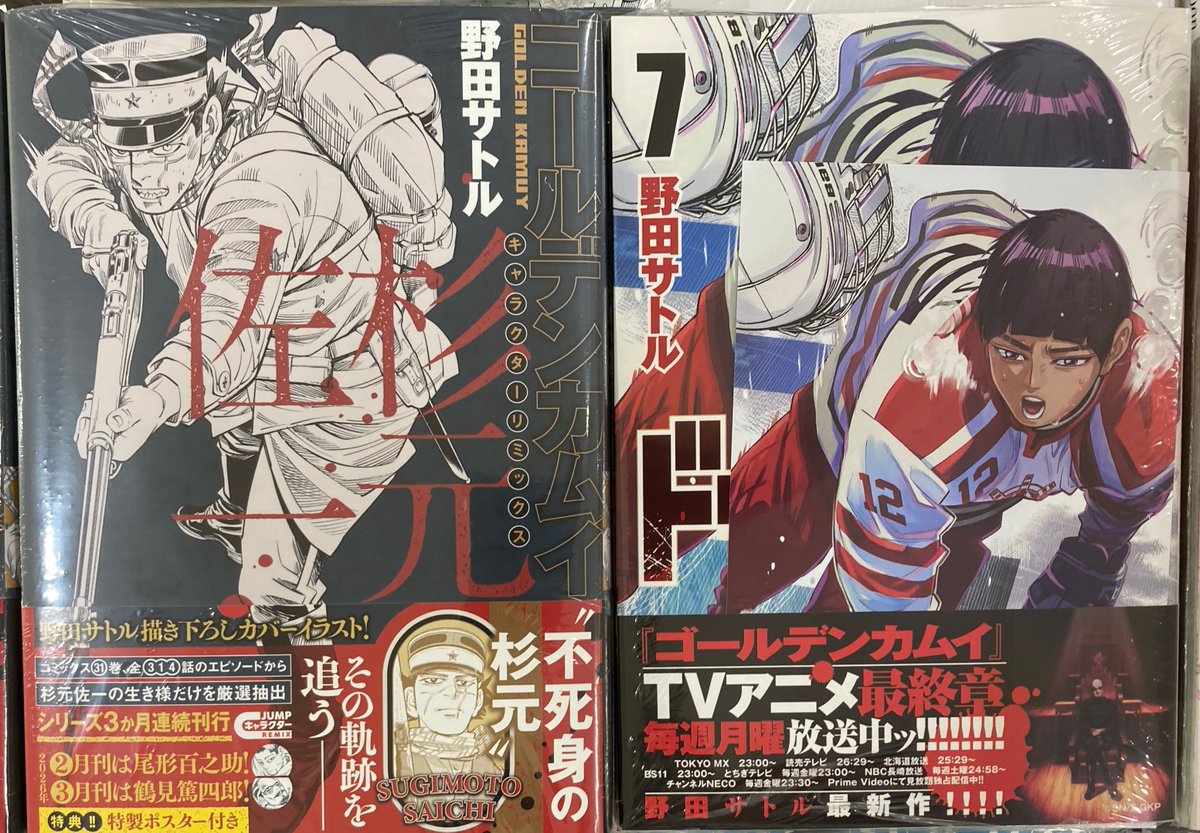 【書籍新刊情報】 「#ゴールデンカムイ キャラクターリミックス 杉元佐一」 「#ドッグスレッド 7」 が入荷しましたコォ⭐️ #野田サトル 先生 新刊コーナーにて発売中‼️