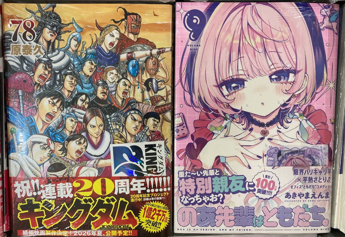【書籍新刊情報】 「#キングダム 78」 「#のあ先輩はともだち。 9」 が入荷しましたコォ🎶 #原泰久 先生 #あきやまえんま 先生 新刊コーナーにて発売中‼️