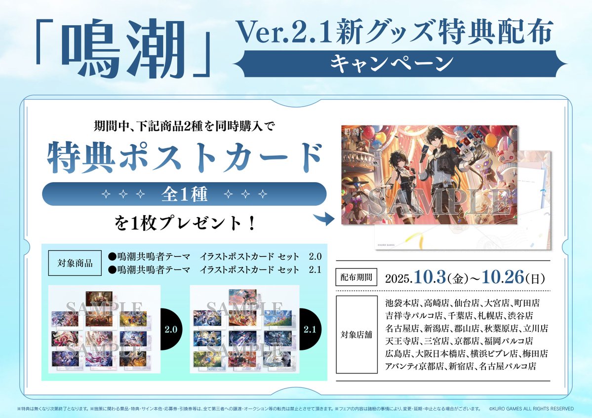 「鳴潮」Ver.2.1グッズ各種を販売開始致しました! さらに、「鳴潮」特典配布キャンペーンが アニメイト郡山店にて開催開始です! 是非この機会にお買い求めください! ※開催期間・対象商品はPOPをご確認ください。 #鳴潮 #鳴潮グッズ