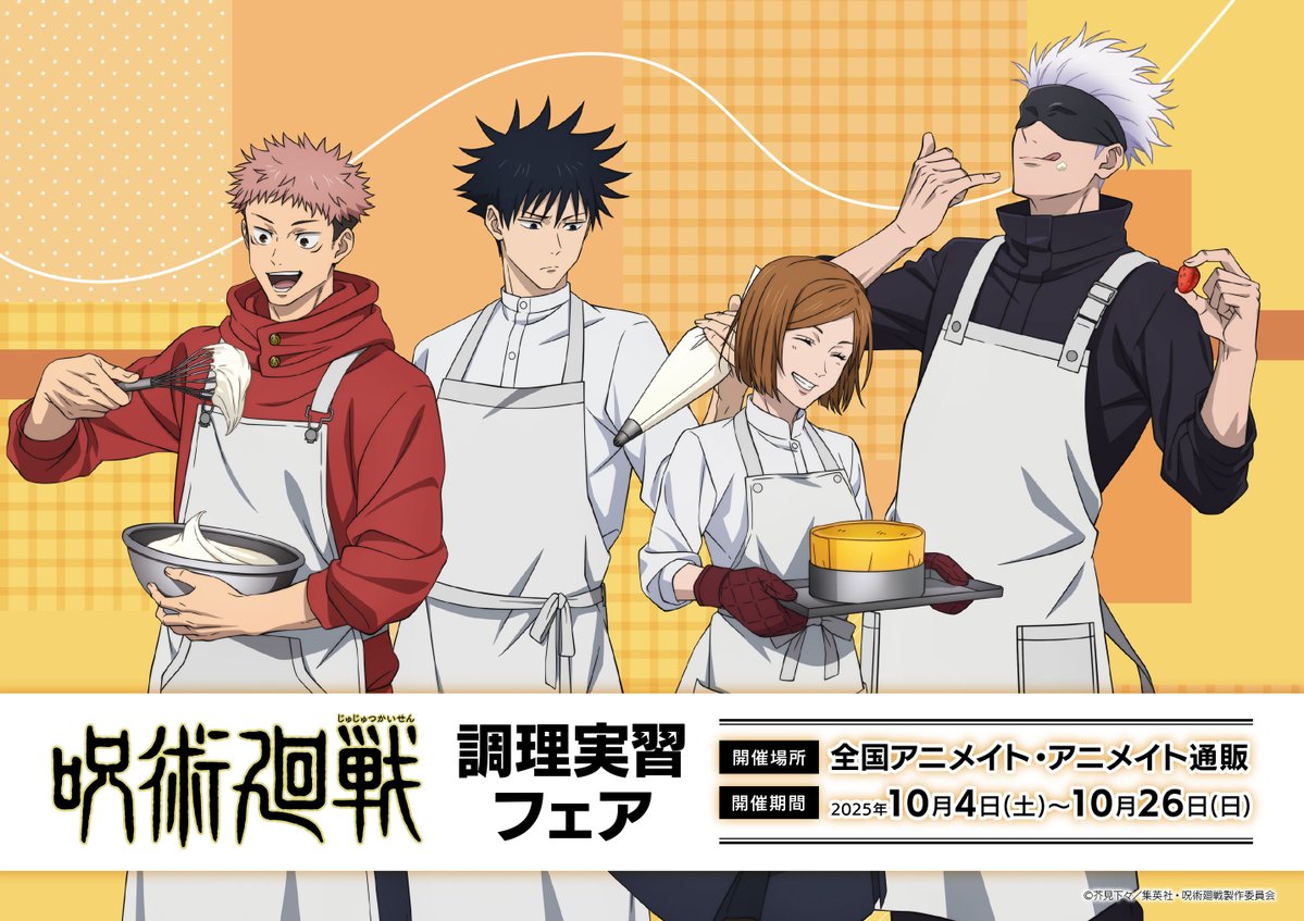 【フェア情報】 「TVアニメ『呪術廻戦』調理実習フェア」本日より開催! 対象商品をご購入・ご予約で【ビジュアルカード(全6種)】をプレゼント! 詳細は添付画像をご確認ください。 #呪術廻戦