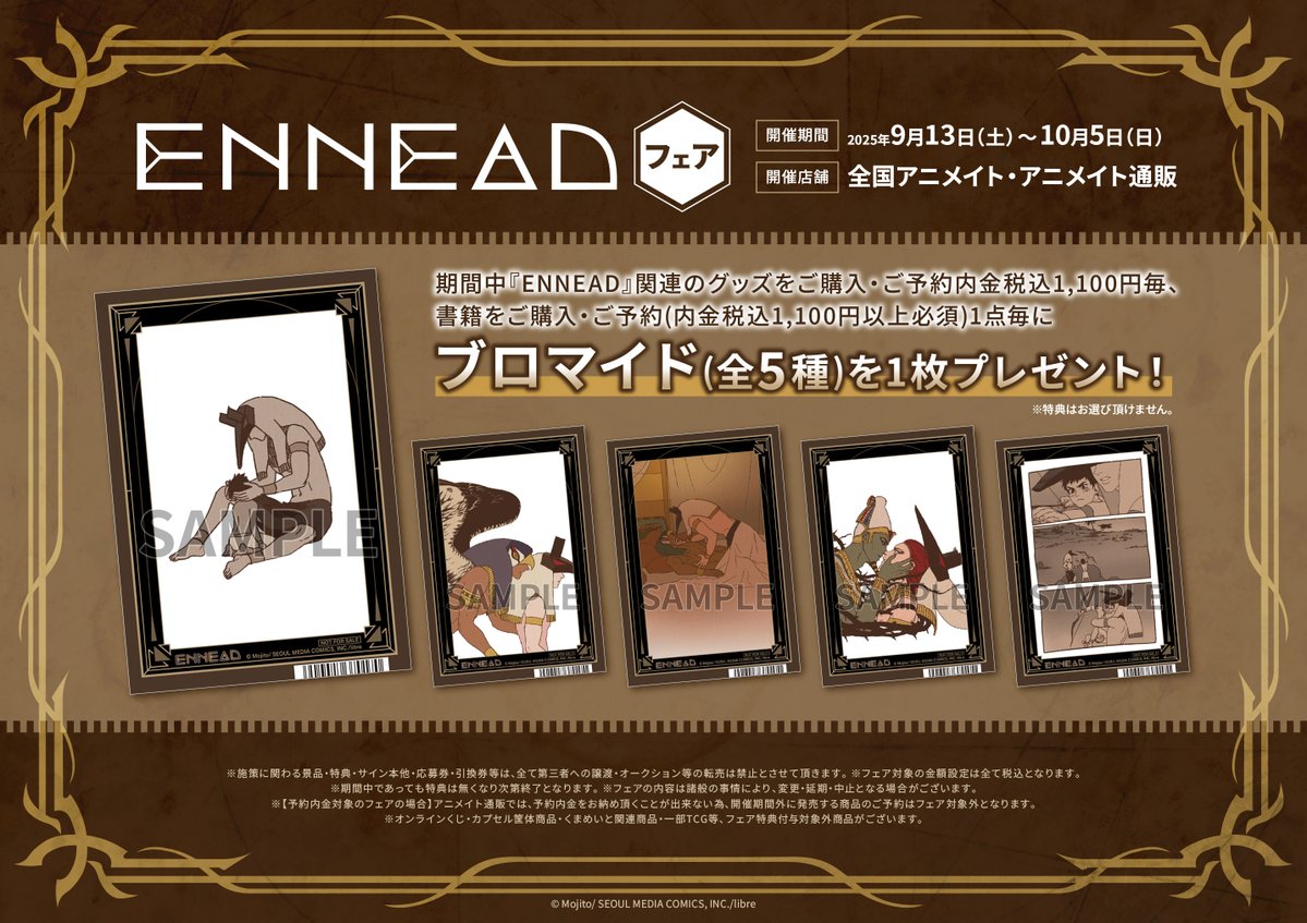 【フェア情報】 ‼フェアは10月5日まで‼ ENNEAD フェア まもなく終了ですコォ❗️ 期間中、フェア条件を満たしたお客様に、特典≪ブロマイド(全5種)≫を1枚プレゼント🎁✨ 🔻詳細はこちら🔻