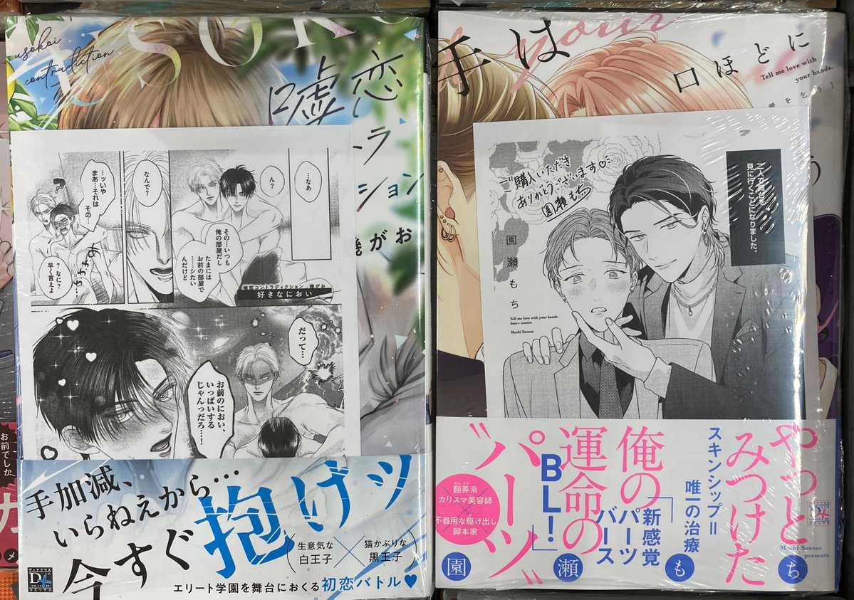 【書籍新刊情報】 「#嘘恋コントラディクション」 「#手は口ほどに愛を乞う」 が入荷しましたコォ💗 購入特典【MP・リーフレット】がございます #幾がお 先生 #園瀬もち 先生 新刊コーナーにて発売中‼️
