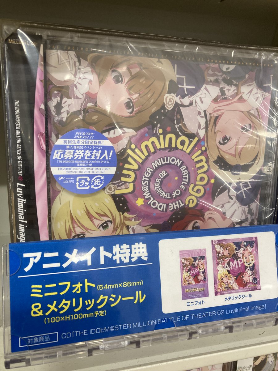 【CD入荷情報】 THE IDOLM@STER MILLION BATTLE OF THE@TER 02 Luvliminal image 入荷しましたコォ✨✨ 🎁アニメイト特典:ミニフォト(54mm×86mm)&メタリックシール(100×H100㎜予定) 🎁封入特典:リリースイベント申し込みシリアルチラシ #ミリマス