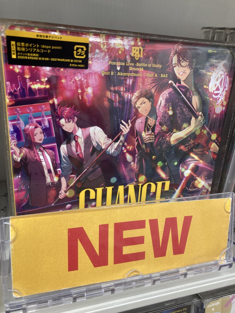 【CD入荷情報】 Paradox Live -Battle of Unity- Round4 “CHANCE” 入荷しましたコォ✨✨ 🎁アニメイト特典:76mm缶バッジランダム1種(全2種) ※ユニット絵柄(BAE/ 悪漢奴等) 🎁封入特典:投票ポイント(dope point)1000pt取得シリアルコード #パラライ