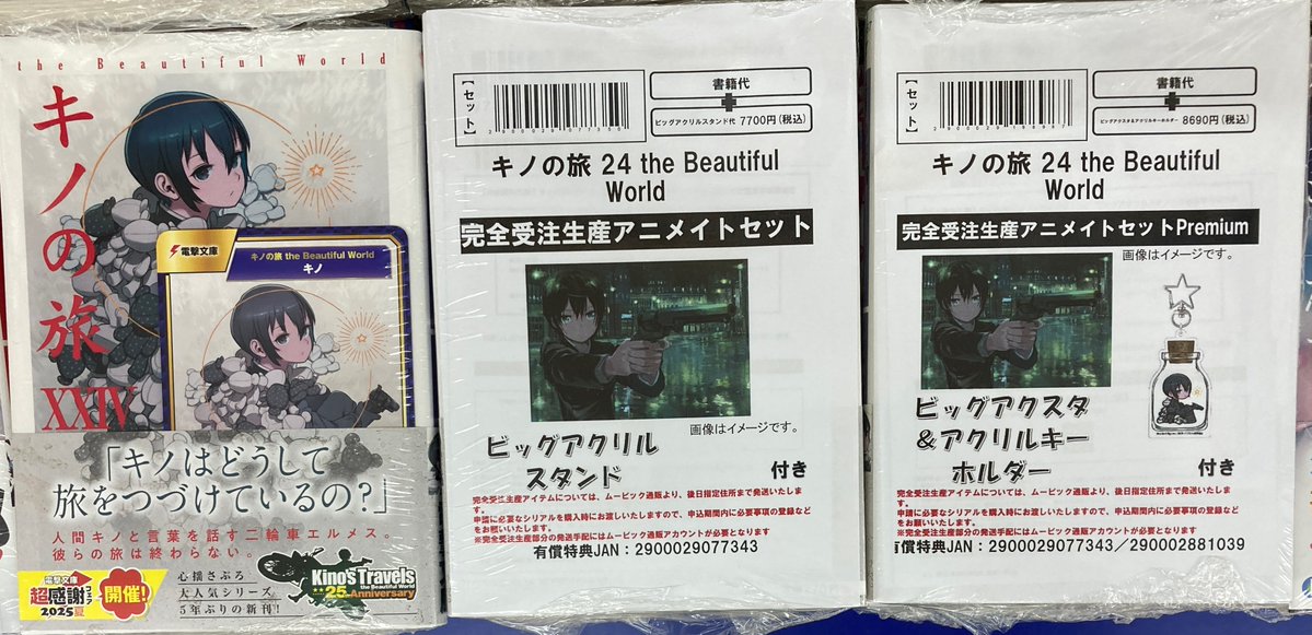 【書籍新刊情報】 「#キノの旅 24」が入荷しましたコォ✨ アニメイト限定セットがございます 購入特典【A.B-T.Cカード・ポストカード】がございます 本日より‼️ 「キノの旅XXⅣ the Beautiful World発売記念アニメイトセット Premium アクリルキーホルダー&ビッグアクリルスタンド付 」開催コォ🎉